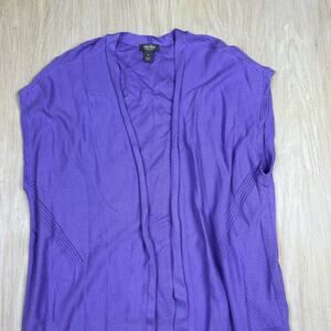 Martha Stewart Purple Mix Stitch Open Front Long Cardigan Sweater Size Medium