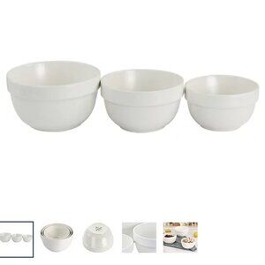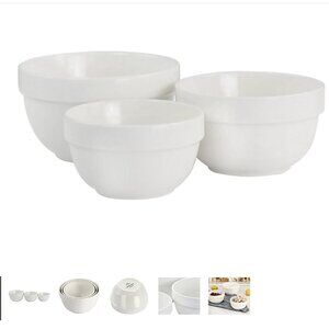 Elegant white mixing bowls. Perfect for baking and serving. Durable and stylish.