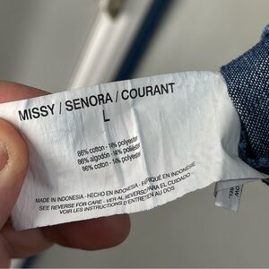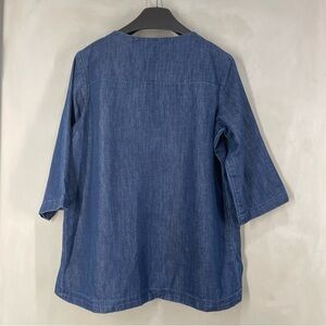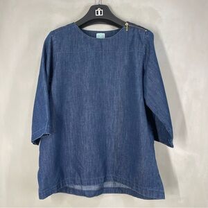 Martha Stewart Women's Everyday Zipper Denim 3/4 Sleeve Woven Top Medium Size