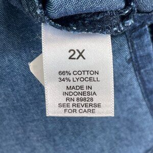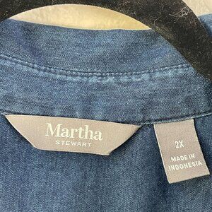 Martha Stewart Womens Plus 2X Denim Chambray Button Up Shirt Shoulder Epaulets