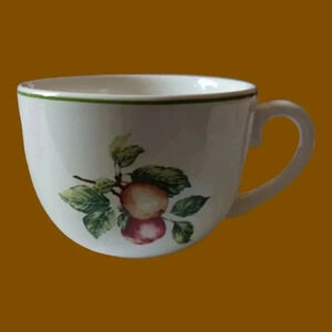 Martha Stewart apples coffee mugs lot of 6 decorated with red apples and green leaves with green rimming brand new without box from smoke and pet free home.0314