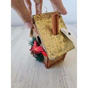 Christmas Ornament Cardinal Snow Birdhouse Ornament Glitter