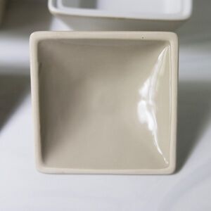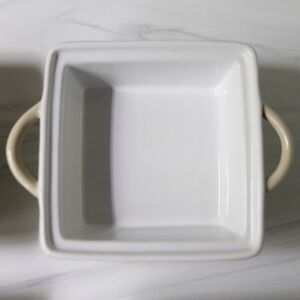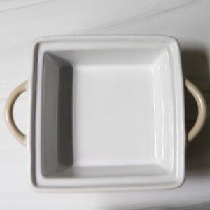 Martha Stewart two individual square casserole dishes lids taupe white 5" x 2"