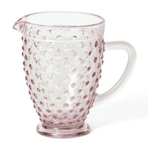 Elevate your home bar or kitchen with this set of four Martha Stewart Hobnail Chauncey 4" Pink Glass Cocktail Juice Glasses. The glasses are made of high-quality glass material and feature a beautiful pink color that will add a touch of elegance to any drink. The set includes a pitcher, making it perfect for serving multiple drinks at once.