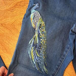 Martha Stewart Straight Leg Jeans with Peacock Embroidery