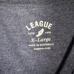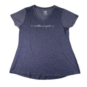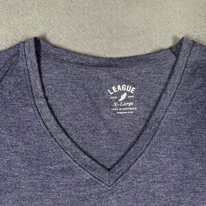 Marthas Vineyard Womens XL League Blue V-Neck Short Sleeve Script Font Tee T-shi