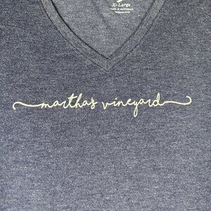 Martha's Vineyard Women's XL League Blue V-Neck Short Sleeve Script Font Tee T-shirt. *Care/material tag has been removed.