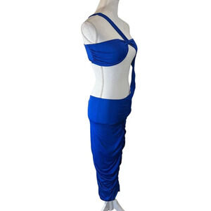Marthea Girls Dress NWT Size Medium Royal Blue Ruched Sides Stretch Pullover