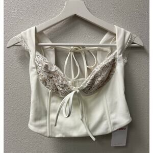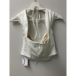 Marthea Women's Blouse Ivory Bustier Blouse size Small Open Back ‎ NEW