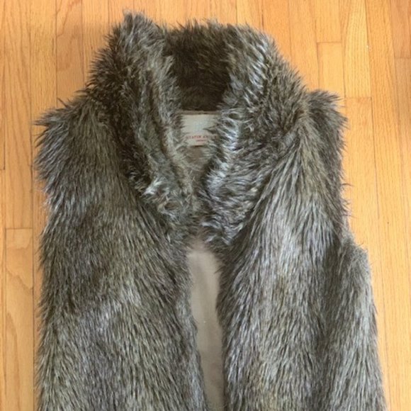 Faux fur vest with a collar-- can be layered and left open or closed with concealed hooks in front. So soft and warm and perfect for layering! In great condition.