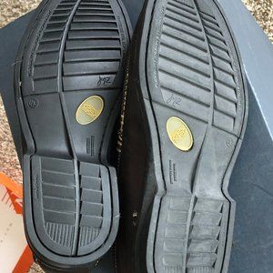 Tumbled glove leather hand stitched in Brazil. These are new and never worn. This is important as the glove leather and gel comfort system is designed to break-in and conform to your individual feet over time. These are discontinued but still very popular. I still have friends that come looking around for any left over DM loafers I might have in the closet.