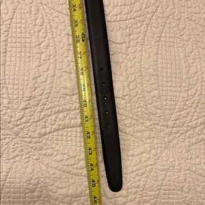 Elegant dark leather belt featuring a polished silver buckle. Ideal for any occasion. Made in USA