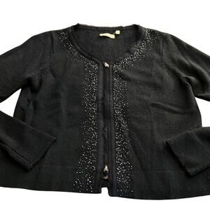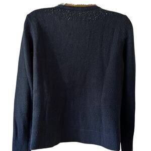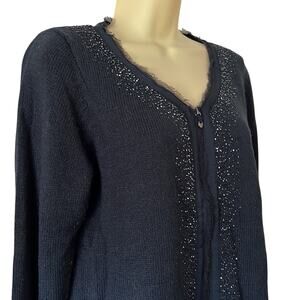 Martin & Osa Dark Navy Blue Beaded Zip Front Cardigan Sweater