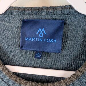 Martin + Osa Gray Blue Pullover Sweater Size Medium Elbow Patches Minimalism