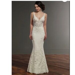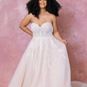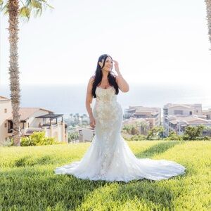 Martina Liana: ivory beaded floral A-line wedding dress with tulle train