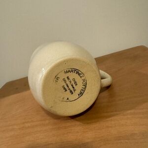 Martinez Pottery Heritage Blue Stripe Stoneware Sugar and Creamer Set, with Mug; includes a lidded sugar bowl, creamer pitcher and mug.