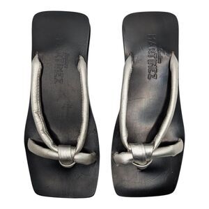 Martinez Roque Silver Sandals Flats Metallic Knot Detail Slip-On US 8.5