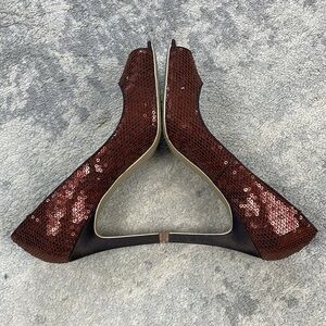 Martinez Valero Whisper Sequin Pumps Heels Peep Toe Brown Sparkle Party 8.5