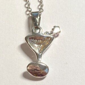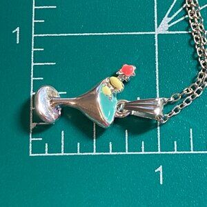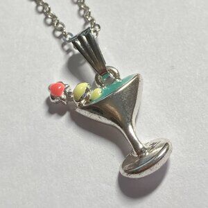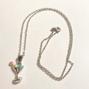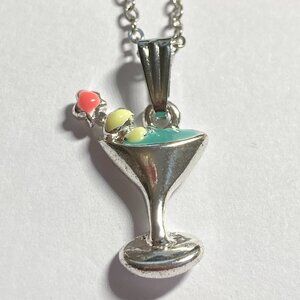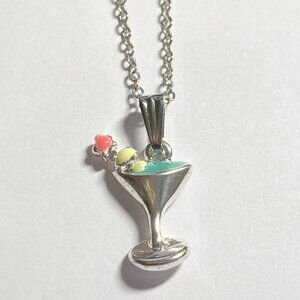 Martini Cocktail Drink Cup Glass Charm Necklace Pendant Aqua Enamel 18" Chain