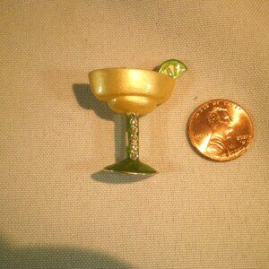 Martini Glass Brooch Rhinestone Crystal & Metal Enamel
