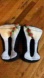 Step into comfort with these unique black and white plush slippers, designed to resemble a martini glass with olive accents. Perfect for lounging in style.