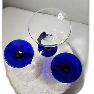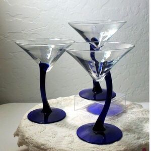 Martini Glasses Cobalt Blue Bavura Libby Curved Stem 3 in the set ~Vintage~