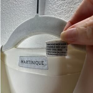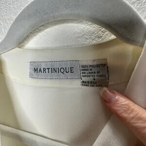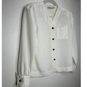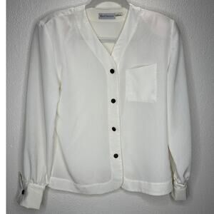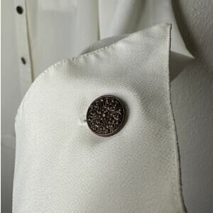 Martinique Ivory Long Sleeve V-Neck Front Bronze Button Blouse Shoulder Pads Front Breast Pocket