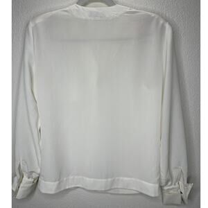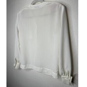 Martinique Ivory Long Sleeve V-Neck Bronze Button Up Blouse Top 6