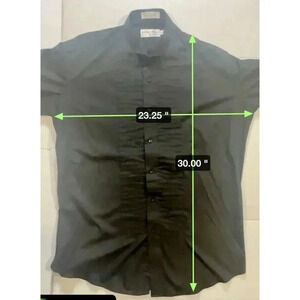 This Martino Collection By Henry Segal Men's Concert Black Shirt is a must-have for any formal or casual occasion. Made with a blend of polyester and cotton, this shirt is comfortable and stylish. It features a band collar style and a collared neckline with long sleeves for a smart look. The shirt comes in a regular fit and a size type of regular, perfect for men. It has a button closure and is available in black color, making it versatile and easy to match with different styles. The shirt is pre-owned and in excellent condition.