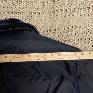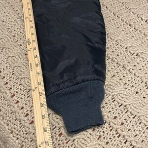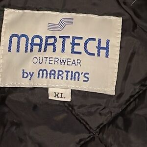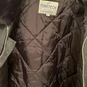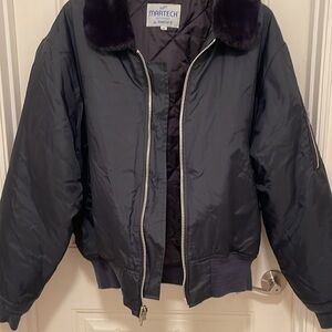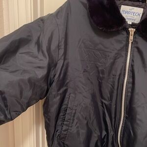 Martech outerwear by Martin’s Flight Jacket Navy Blue Nylon Faux Fur collar, Full Zip, men’s Sz XL pocket on left sleeve, 2 front waist pockets, sign where patch was on the chest on one side, great preowned condition.