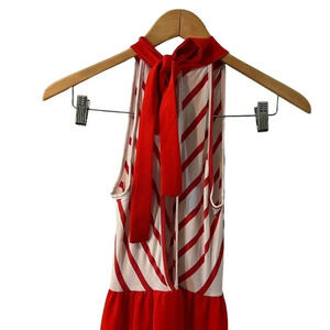 Maru Juniors Maxi Dress Size Small Halter Tie Keyhole Chiffon Orange White Knit