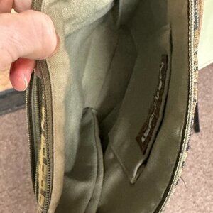Beautiful Maruca artisan crossbody in a rare gold-olive cast floral tapestry pattern. Handmade in Boulder, Colorado — Maruca bags are known for their unique textiles, small-batch construction, and long-lasting quality.