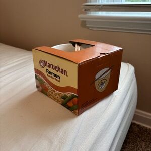 Maruchan ceramic bowl, dishwasher and microwave safe. Comes with chopsticks.