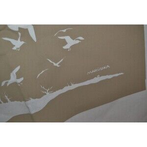 Vintage Marushka in excellent condition. The fabric, screenprint is natural sand and tan. Fabulous birds in flight on dunes. Great for retro, mcm, mod, eames era, atomic, coastal home trends. Extremely well preserved.