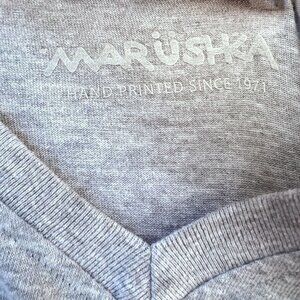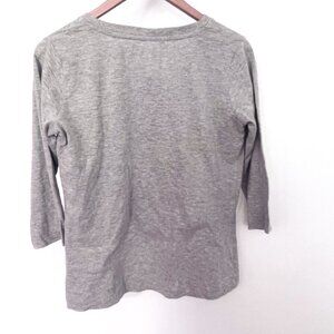 Gray/grey v neck tee with three quarter length sleeves and front graphic of a colorful parrotfish.
