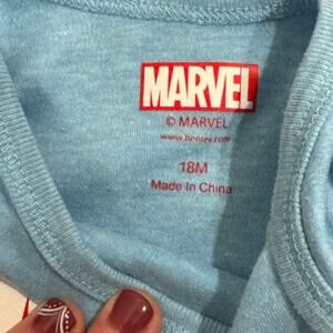 Dress your little hero in style with this officially licensed Marvel 18-Month Blue Bodysuit! Made from soft, breathable fabric, this adorable one-piece features a vibrant print of Iron Man, Spider-Man, Captain America, and Hulk, bringing the excitement of the Avengers to your baby’s wardrobe.