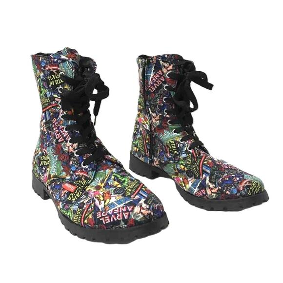 Marvel All Super Heroes Comic Print Combat Boots 10