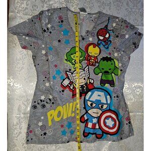 Marvel Avengers Cartoon Character Gray Scrub top With Funko Style Graphics Work