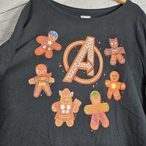 Marvel Avengers Christmas Gingerbread Cookie T-shirt Women's Sz 6X Black Tee
