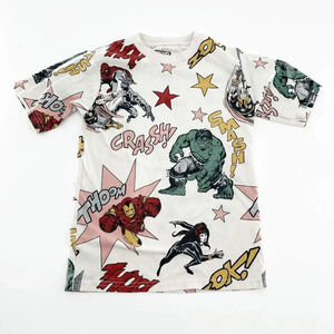 Marvel Avengers Graphic Tee Kids XS White Multicolor Crew Neck Short Sleeve