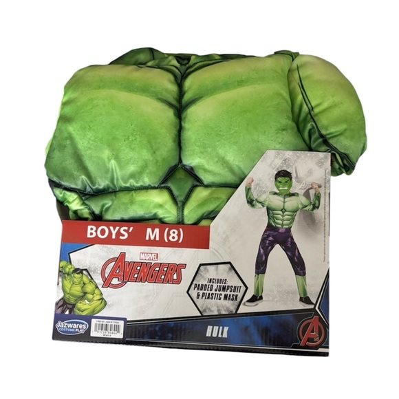 Unleash your inner Hulk with this Marvel Avengers costume. Includes padded green jumpsuit and purple pants. Perfect for superhero adventures.
