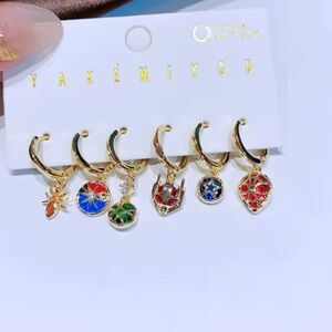 Marvel Avengers Spiderman 14K Gold Plated Gemstone Mismatch Huggie Hoop Earring