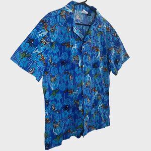 Marvel Avengers Tropical Hawaiian Shirt Blue Men's Large Short-Sleeve Button-Up