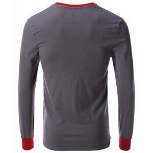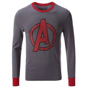 • Cool Johns Long underwear long sleeve shirt featuring the Avengers logo in red outlined in black on a gray background.