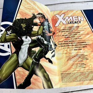 This listing features the "Avengers vs. X-Men Legacy" comic book, subtitled "Occupy The Jean Grey School!". This volume collects X-Men Legacy (2008-270-275) and is written by Christos Gage, with art by Rafa Sandoval and David Hallden. The cover art is by Mark Brooks and Rachelle Rosenberg. The comic is in excellent condition, showcasing vibrant artwork and a compelling storyline that brings together the Avengers and X-Men in a fight for Jean Grey.