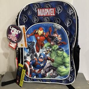 The Marvel Avengers Light Up Backpack is a fun and functional accessory for kids, featuring a 3D front design with popular characters like Thor, Iron Man, and Captain America. The backpack includes a laptop sleeve, key chain, and flashing lights for added convenience and style. With a multicolor design and comfortable shoulder strap, this backpack is perfect for travel, activewear, and casual occasions, making it a must-have for any young superhero fan.