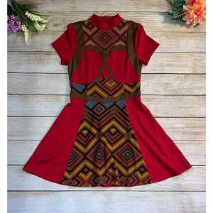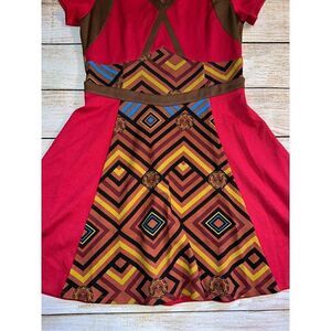 Ready to defend Wakanda? Channel your inner warrior with this Dora Milaje cosplay dress! Inspired by the Black Panther's bodyguards, this dress is the perfect outfit to wear while watching Black Panther: Wakanda Forever. Features geometric color block panels inspired by the warriors with the Black Panther symbol tossed throughout, a faux sweetheart neckline with mesh paneling up top and a harness-inspired design across the bust. Comes with a mock turtleneck, side pockets and back zipper closure.