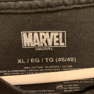 Unleash your inner superhero with our Marvel Black T-Shirt in Men's Size XL. This iconic tee features a bold, red 'MARVEL' logo emblazoned across the chest - a tribute to the legendary comics and epic movie franchise. Crafted from high-quality, soft-to-the-touch fabric, it promises both comfort and durability. The classic black color makes it a versatile addition to any fan's wardrobe, while the relaxed fit ensures it's perfect for casual outings or movie marathons. Whether you're a die-hard Marvel aficionado or simply appreciate a well-designed graphic tee, this shirt is a must-have for showcasing your fandom.