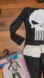 Black and white costume with iconic skull logo. Includes gloves and boot covers.