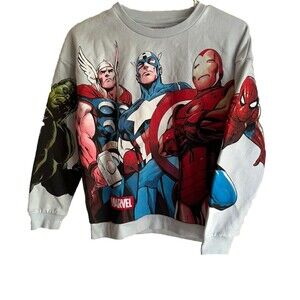 Marvel Boys Sweater Hulk Spiderman Captain America Size L 10/12 70% Cotton NWT